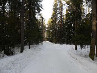 As a followup to my previous post about bikeways in winter, I took some photos of what the conditions are at the beginning of March. There's been a couple of days with temperatures with daily highs above freezing (as in +1C or +2C when the sun is shining). One can really feel the spring is coming. Wearing the fur hat is unnecessary, water is dripping from the roof, trees are clear of snow and the first birds are singing.